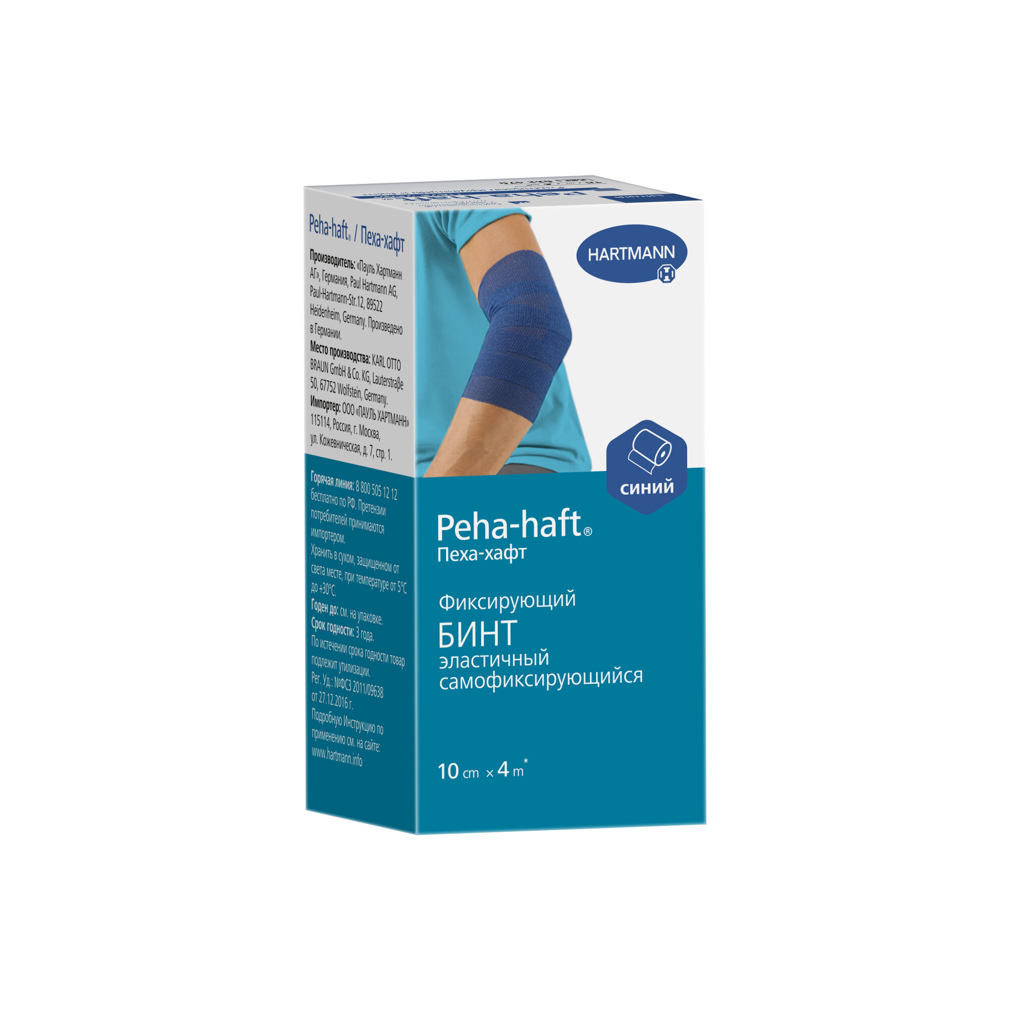 Hartmann бинт самофиксирующийся Peha-haft синий, 4м х 8 см, 1 шт.