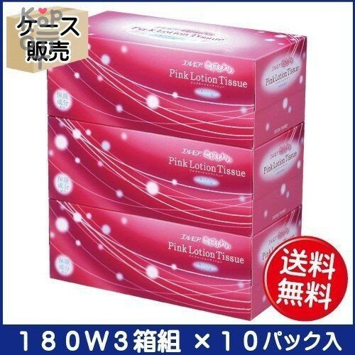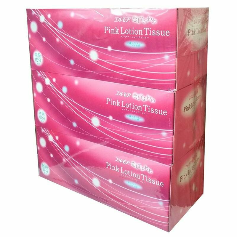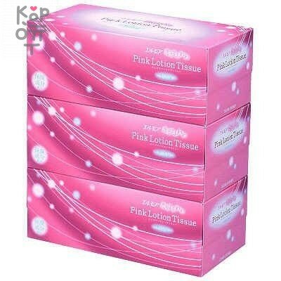 Cалфетки бумажные с коэнзимом Q10, салфетки бумажные в коробке двухслойные, розовые, Kami Shodji "PINK LOTION TISSUE", спайка 3 коробки по 180 шт., Япония