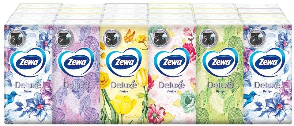 Zewa Платочки бумажные носовые Deluxe Design 3-х слойные, 10 шт в уп. / интересное:
