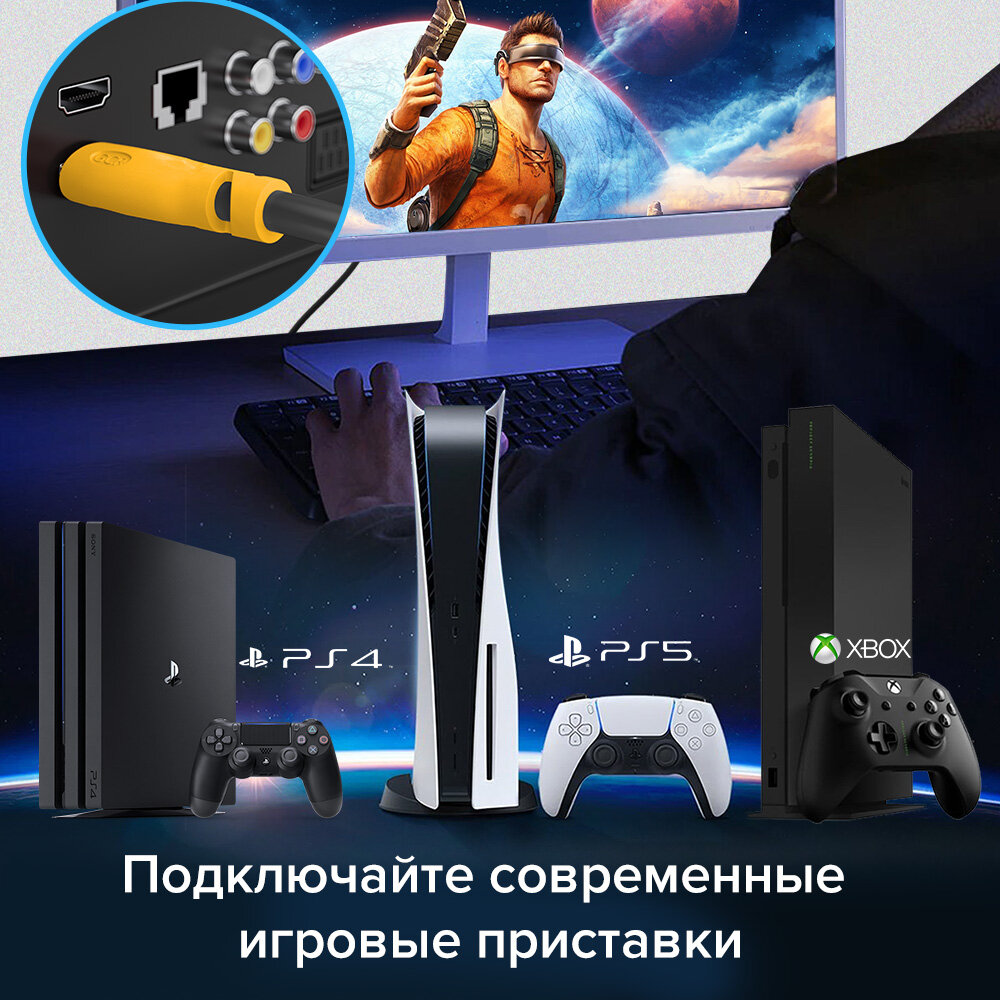 Кабель HDMI 2.0 4K UltraHD HDR 3D 18 Гбит/с для PS4 PS5 Smart TV двойное экранирование (GCR-HM301) черный;желтый 1.0м