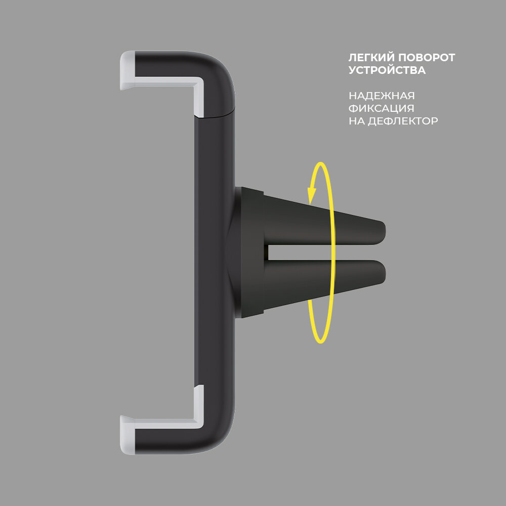 Сторона, которая вставляются в дефлектор короткая - нужно смотреть расположение дефлекторов в вашей машине, если под ними есть полочка, то высока вероятность, что телефон до конца не встанет. Поворотный механизм без фиксации, на кочках телефон запросто поворачивает. |