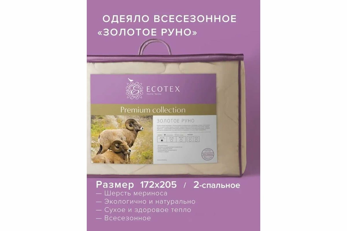 Одеяло Ecotex Золотое руно (200х220 см), шерсть мериноса, всесезонное
