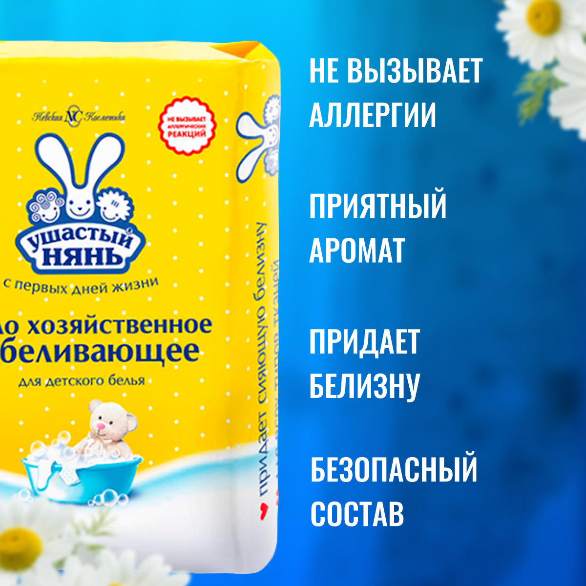 Ушастый нянь Мыло хозяйственное для детского белья отбеливающее, 180 г