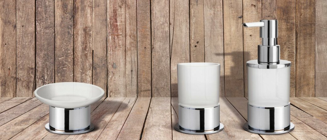Набор аксессуаров для ванной комнаты 3 предмета Elan Gallery Серебро (мыльница, дозатор, стакан)