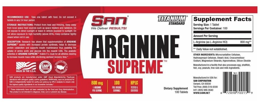 SAN Arginine Supreme 100 табл (SAN) интересное: