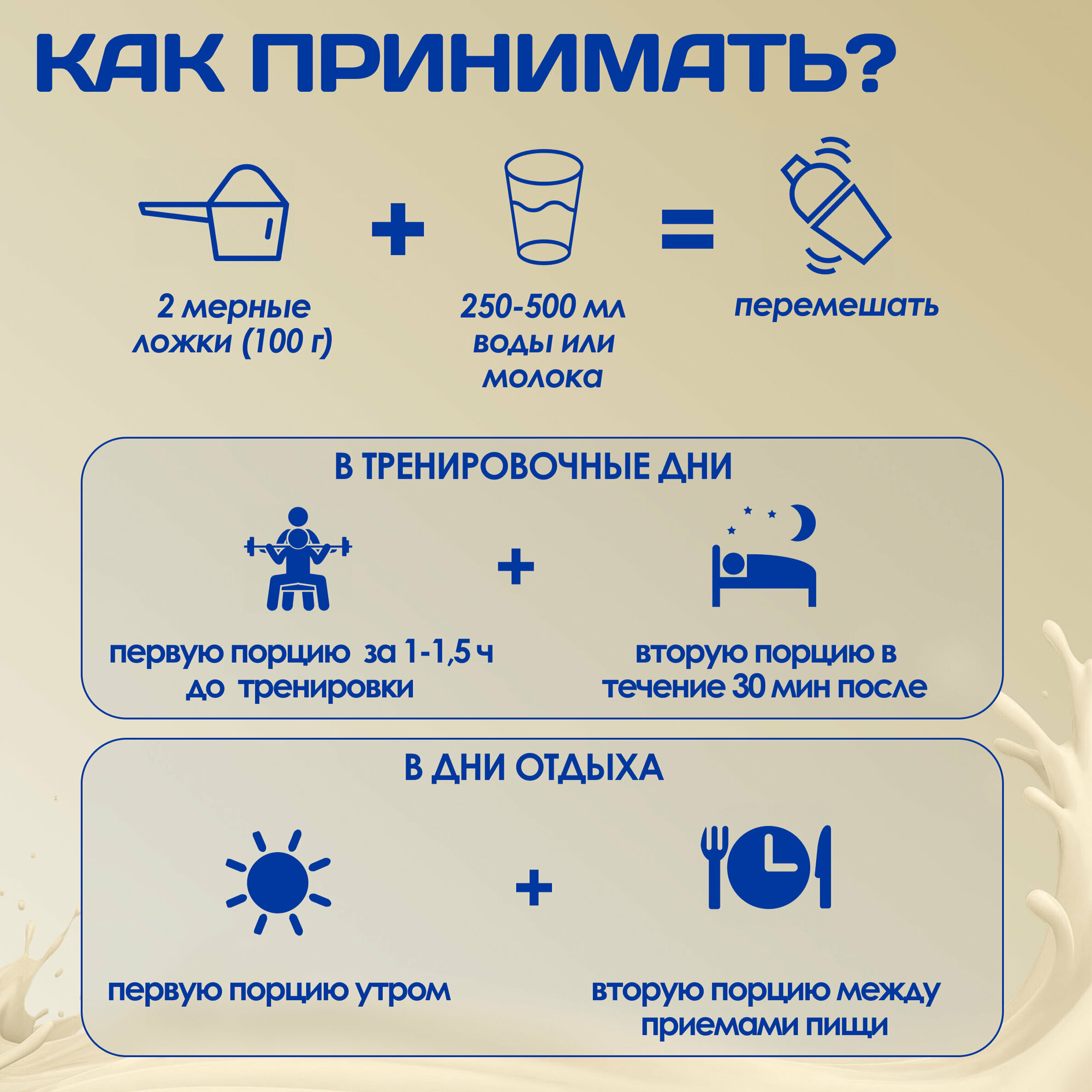 | Отзыв: | Хорошо растворяется, но растворяйте его в теплом молоке. Рабочий 100%, есть витамины и bcaa. Беру его всегда. Бывает что 3кг можно взять за 1300руб. Не дорогой. |