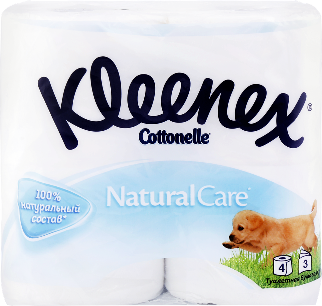 Туалетная бумага Kleenex белая Natural Care, 3-х слойная, 4 шт