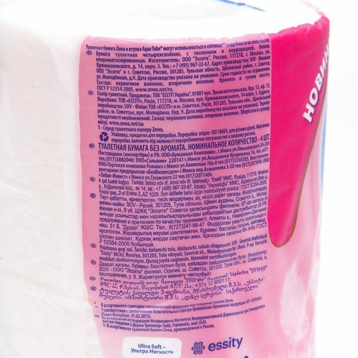 Туалетная бумага Zewa Ultra Soft 4 рулона 4 слоя 1шт
