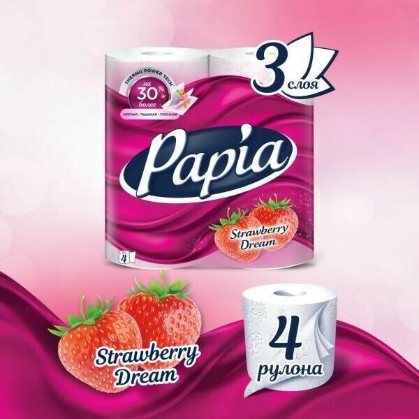 Papia Туалетная бумага Клубничная Мечта 3сл 4рул