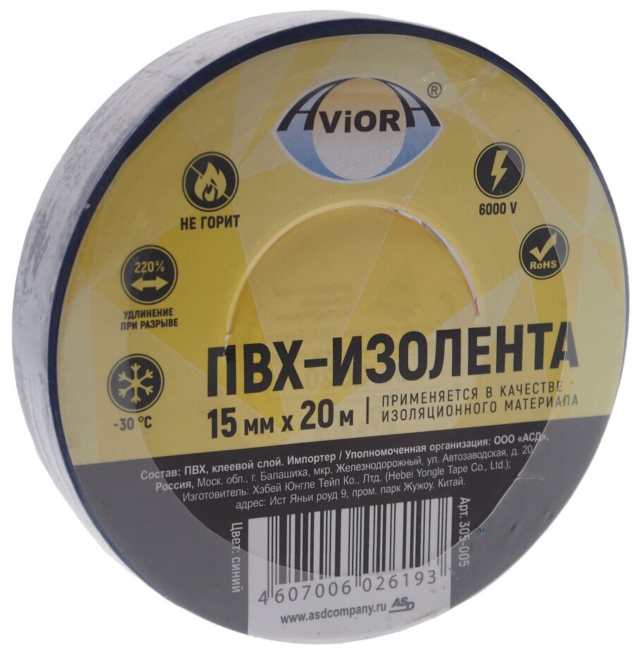 Изолента AVIORA ПВХ, 15 мм, 20 м, синяя 305-005