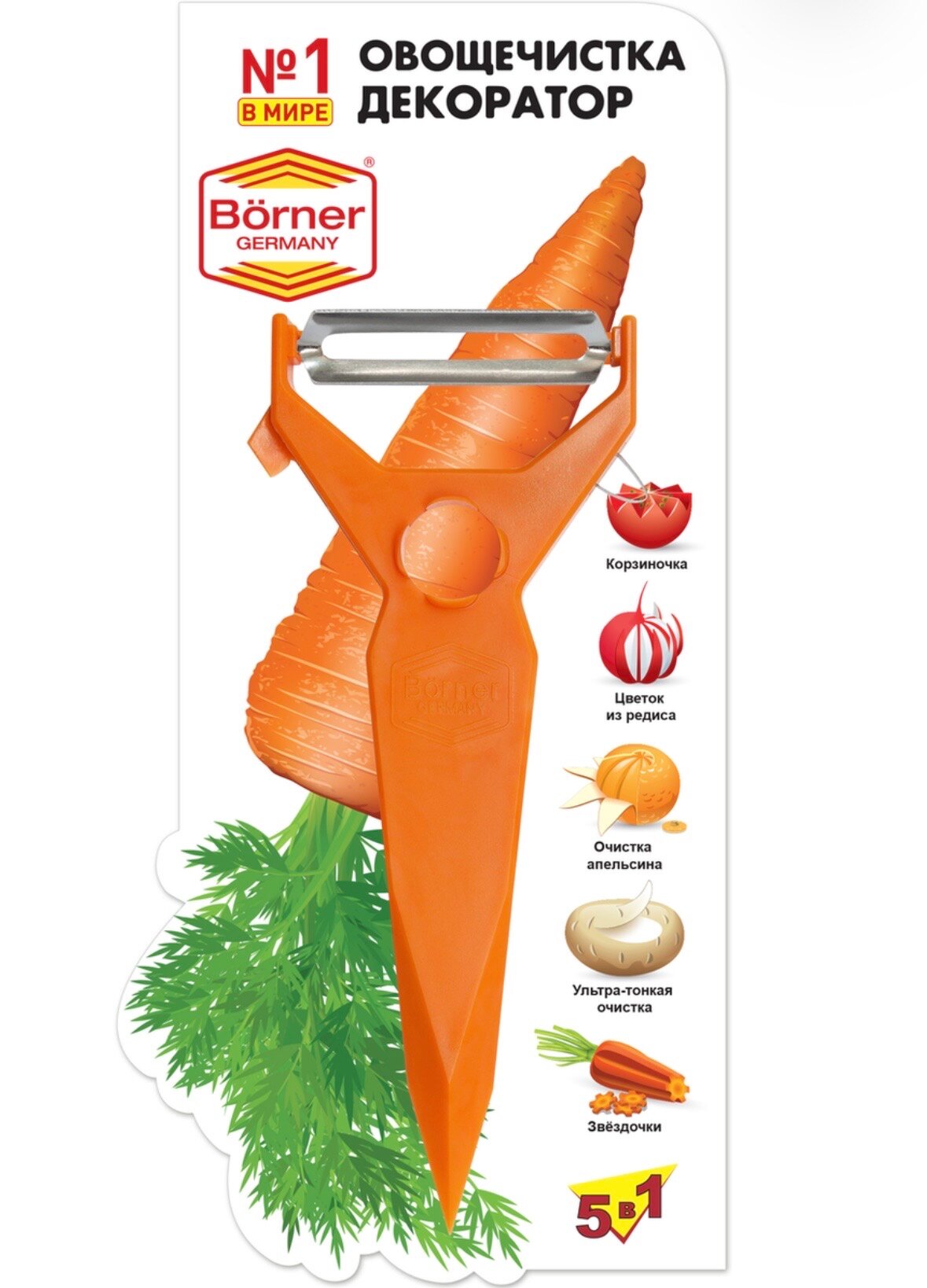 Овощечистка-декоратор 5 в 1, Borner