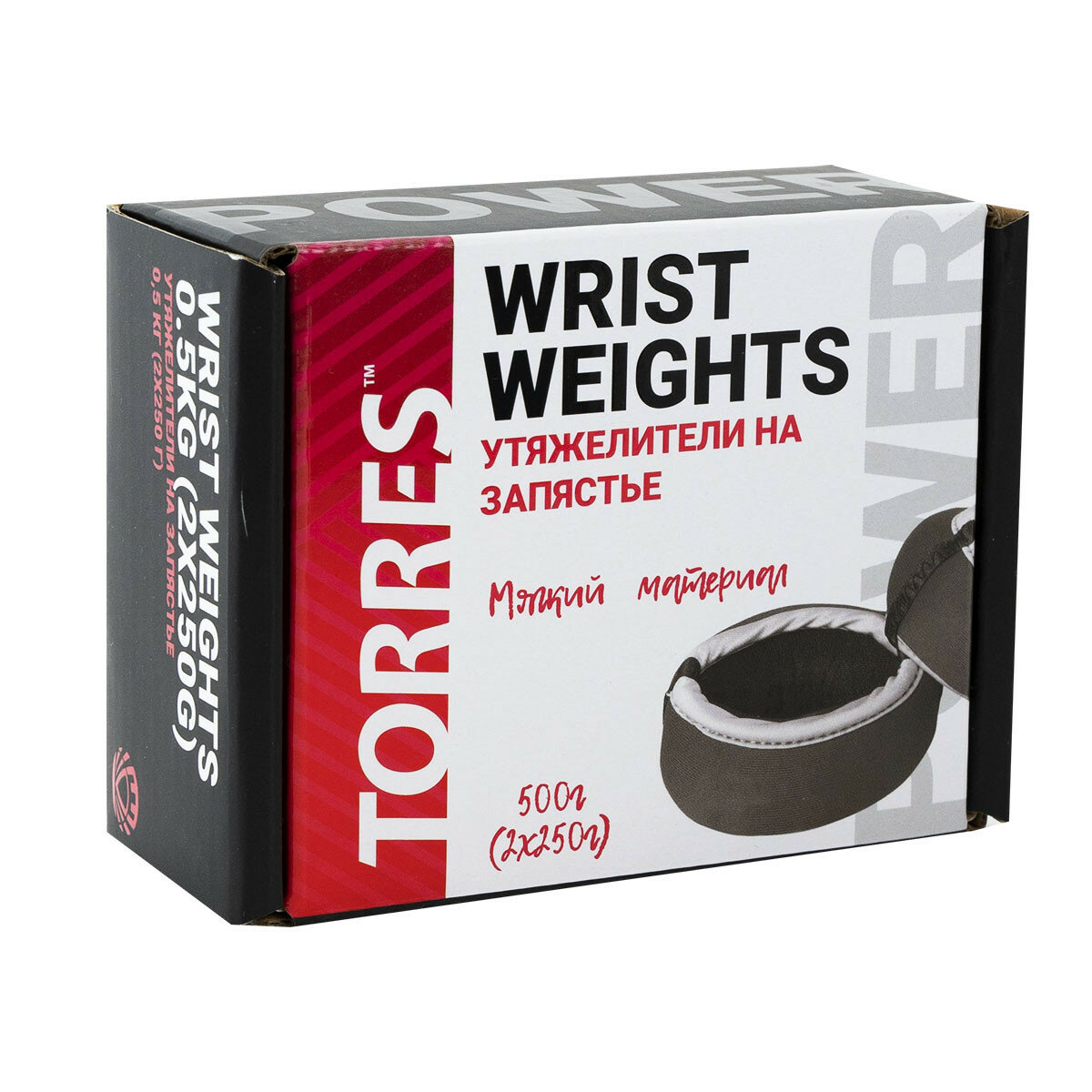 Утяжелители на запястье TORRES 0,5 кг арт.PL607605, (2штх250г), нейлон, металл. песок, красн-сер.