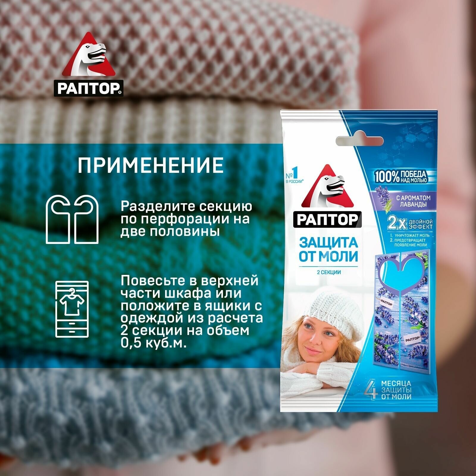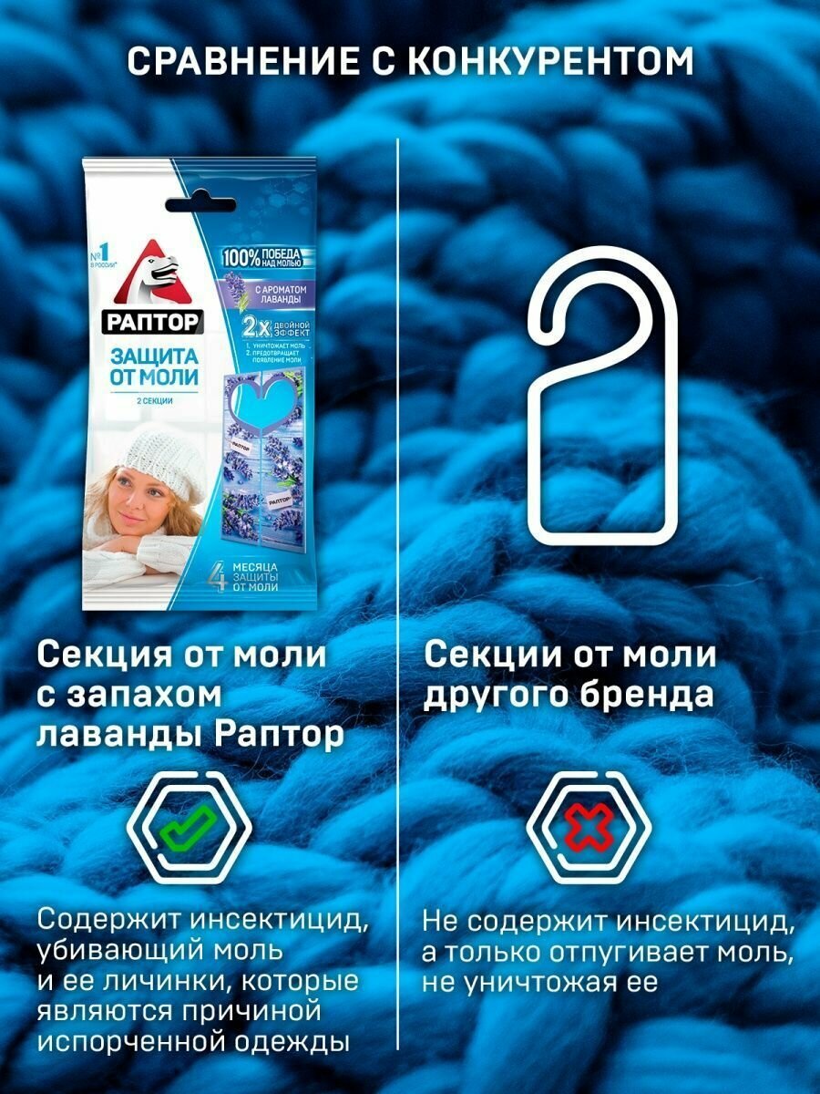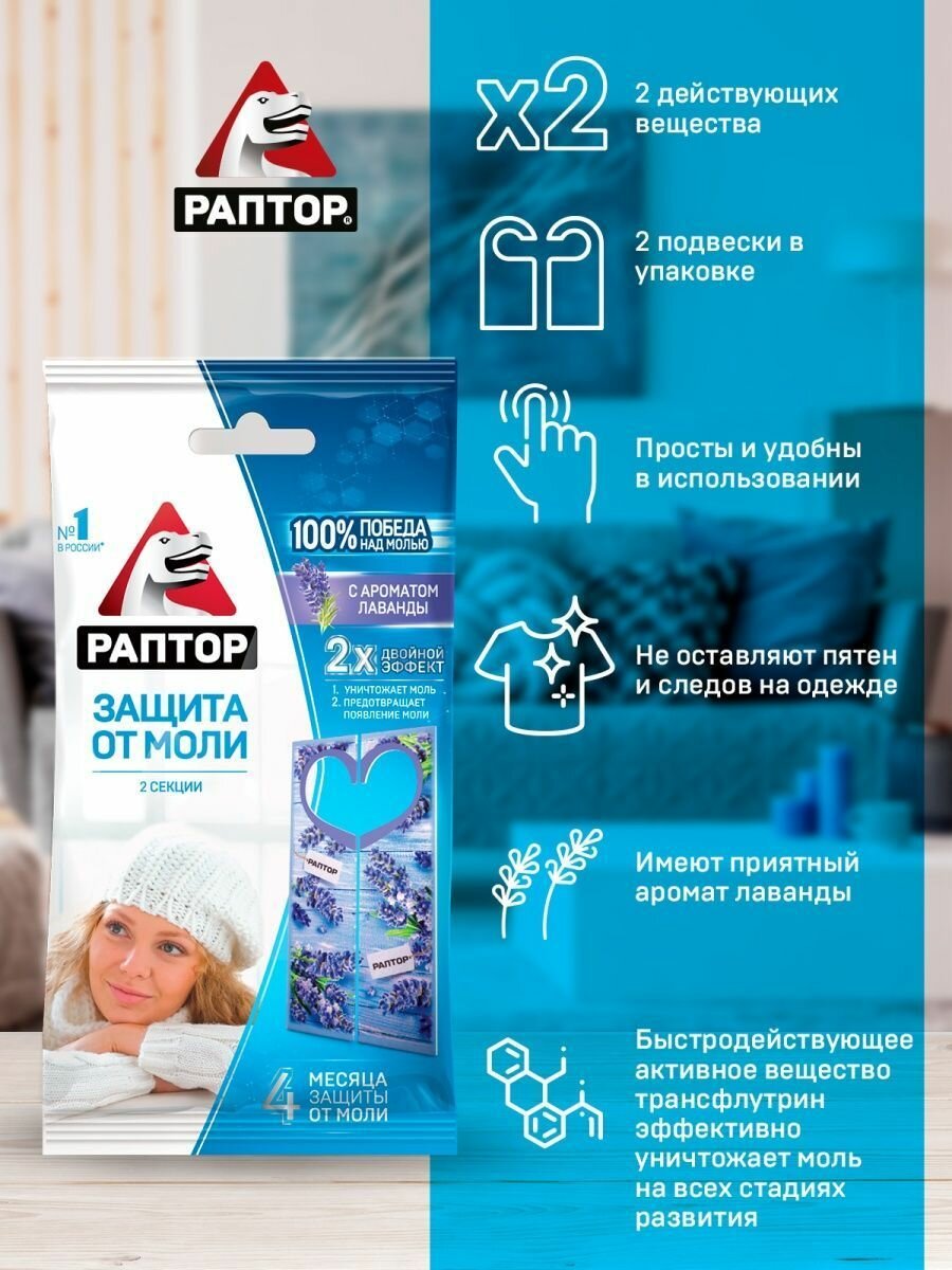 Средство от моли раптор с ароматом лаванды, 2 уп. по 2 секции / защита от моли