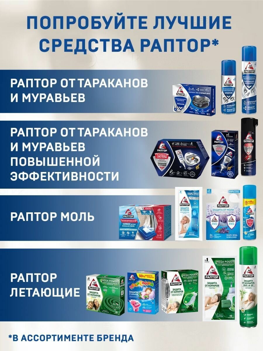 Ловушка для тараканов, средство от ползающих насекомых, Раптор, защита до 6 мес, отрава, 10 штук х 2 упаковки
