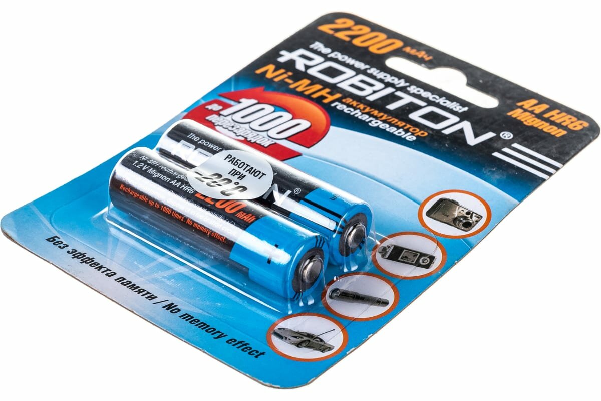 Купить Ni-Mh аккумуляторы ROBITON 2200MHAA-2 BL-2 8791, 1.2В, 2200мАч, размер АА (HR6), металлогидридные, 2шт в упаковке