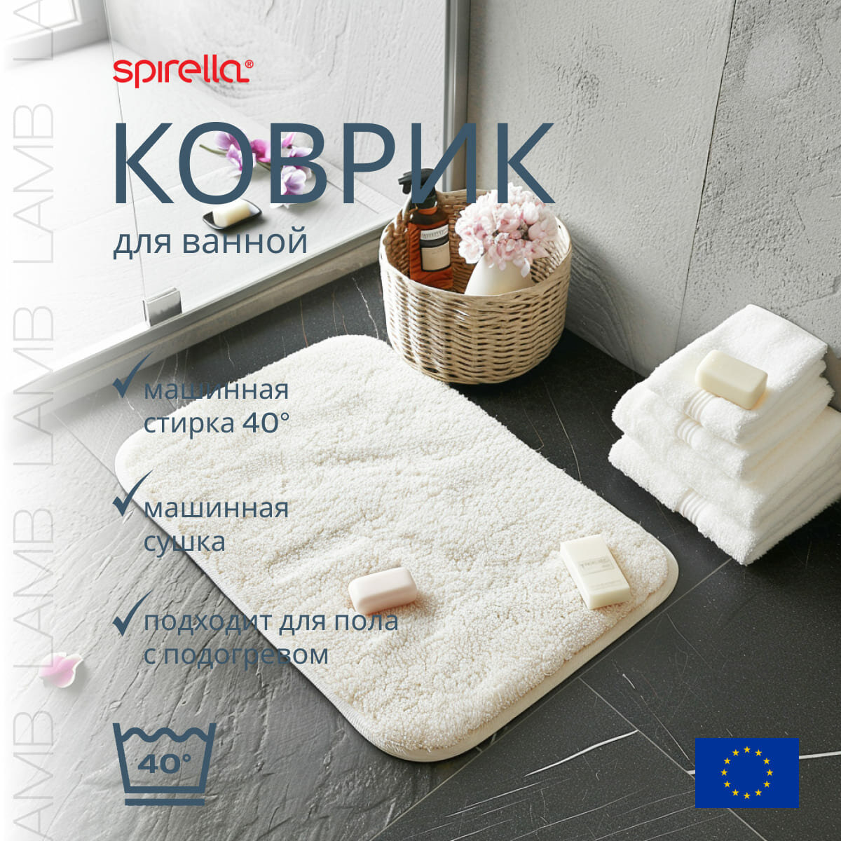 Коврик для ванной Spirella Lamb, 60x90см, полиэстер/микрофибра, белый 1015273