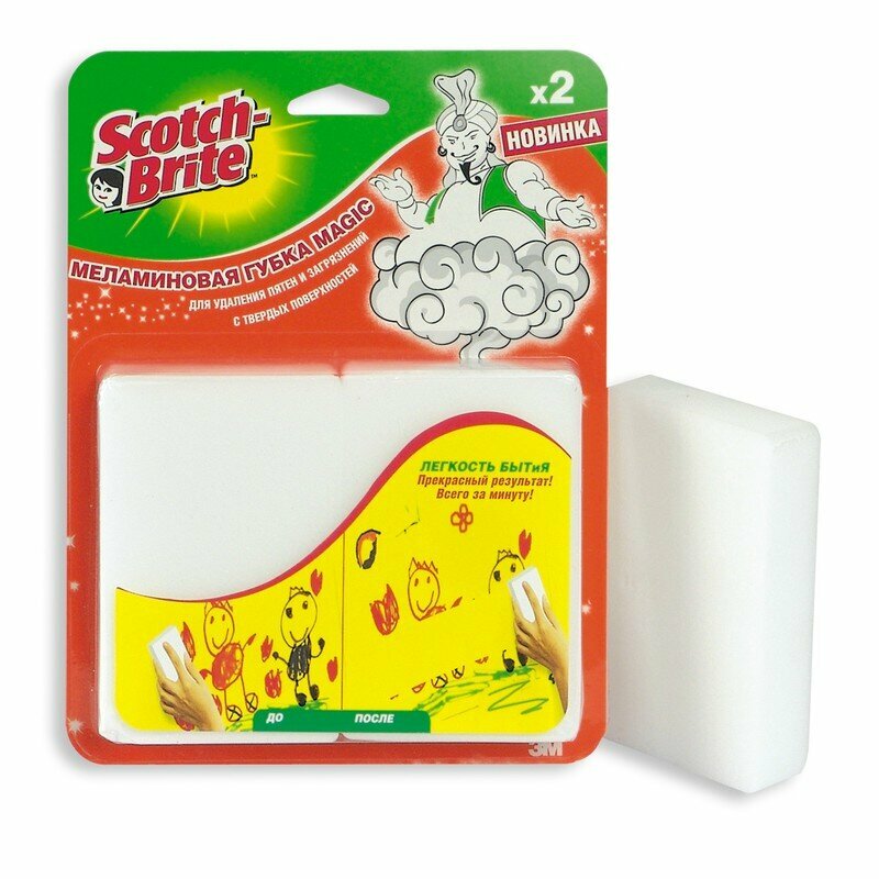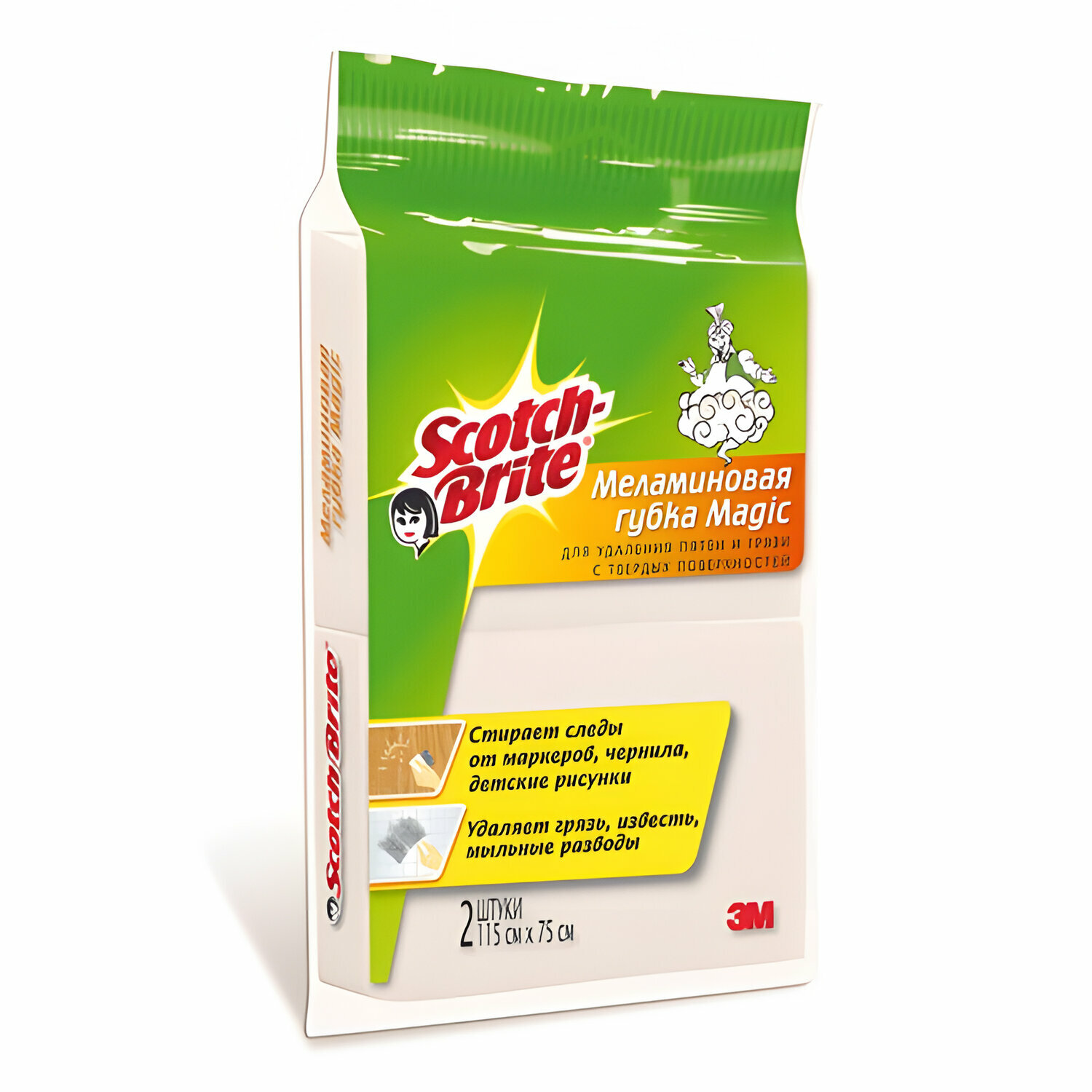 Губка для удаления пятен 3M Scotch-Brite MEL-2 белый меламин (упак: 2шт) (7000041342) интересное: