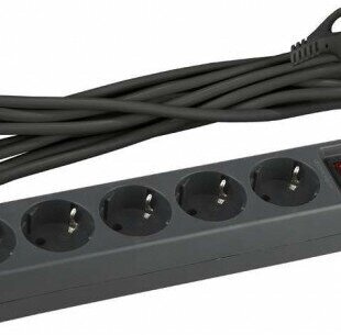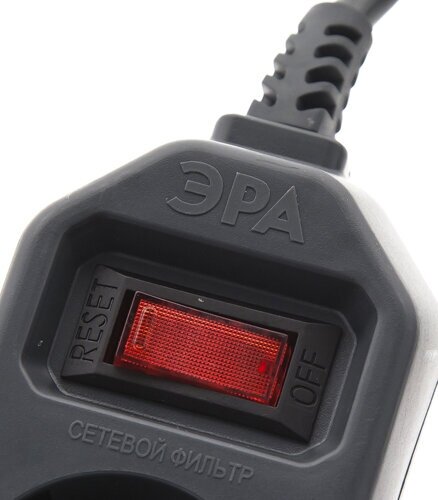 Сетевой фильтр Эра с базовой защитой, заземл. и выкл. 5 розеток 3м 10А, Чёрный, USF-5es-3m-B (Б0019034)