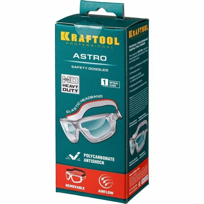 KRAFTOOL ASTRO Прозрачные, профессиональные защитные очки с резинкой, поликарбонатная монолинза, неп