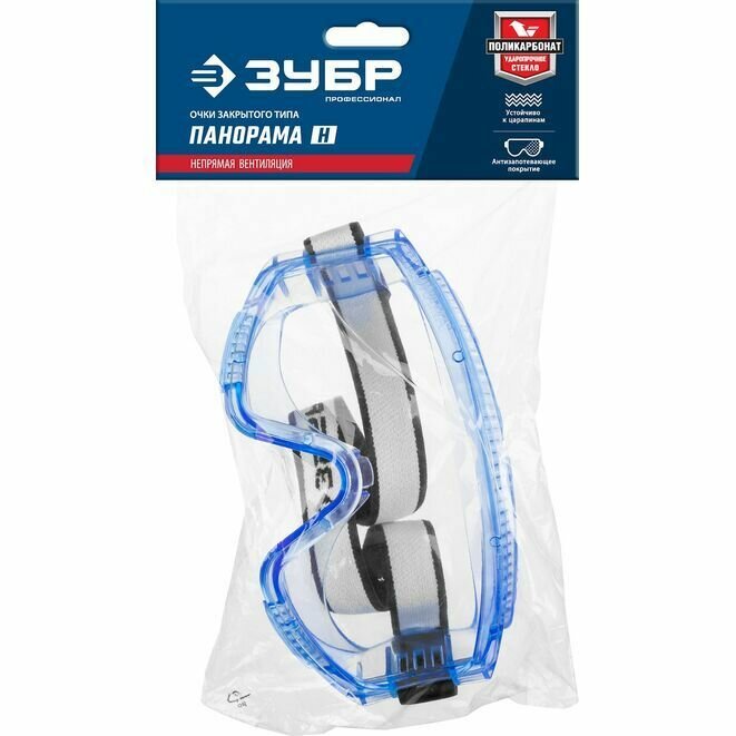 Очки защитные с непрямой вентиляцией ЗУБР панорама Н, закрытого типа, стекло из ударопрочного поликарбоната, Профессионал (110237)