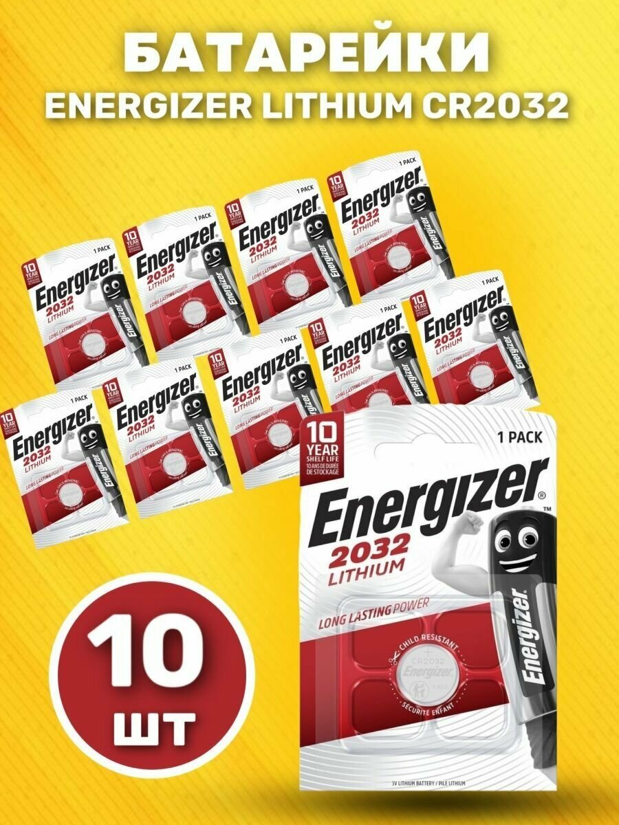 Купить Батарейка Energizer CR2032 Lithium литиевая дисковая, 1шт на блистере, 3V 10 штук