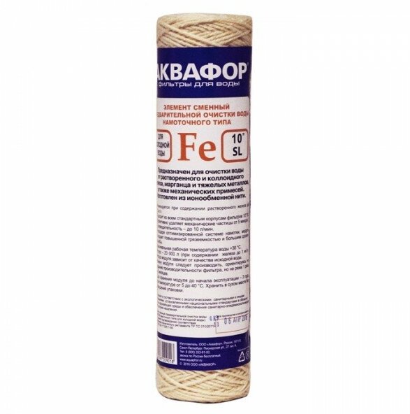 Картридж фильтра Аквафор для холодной воды Fe 63/250 намоточный от ржавчины 5 мкм 10SL 208824 АКВАФОР