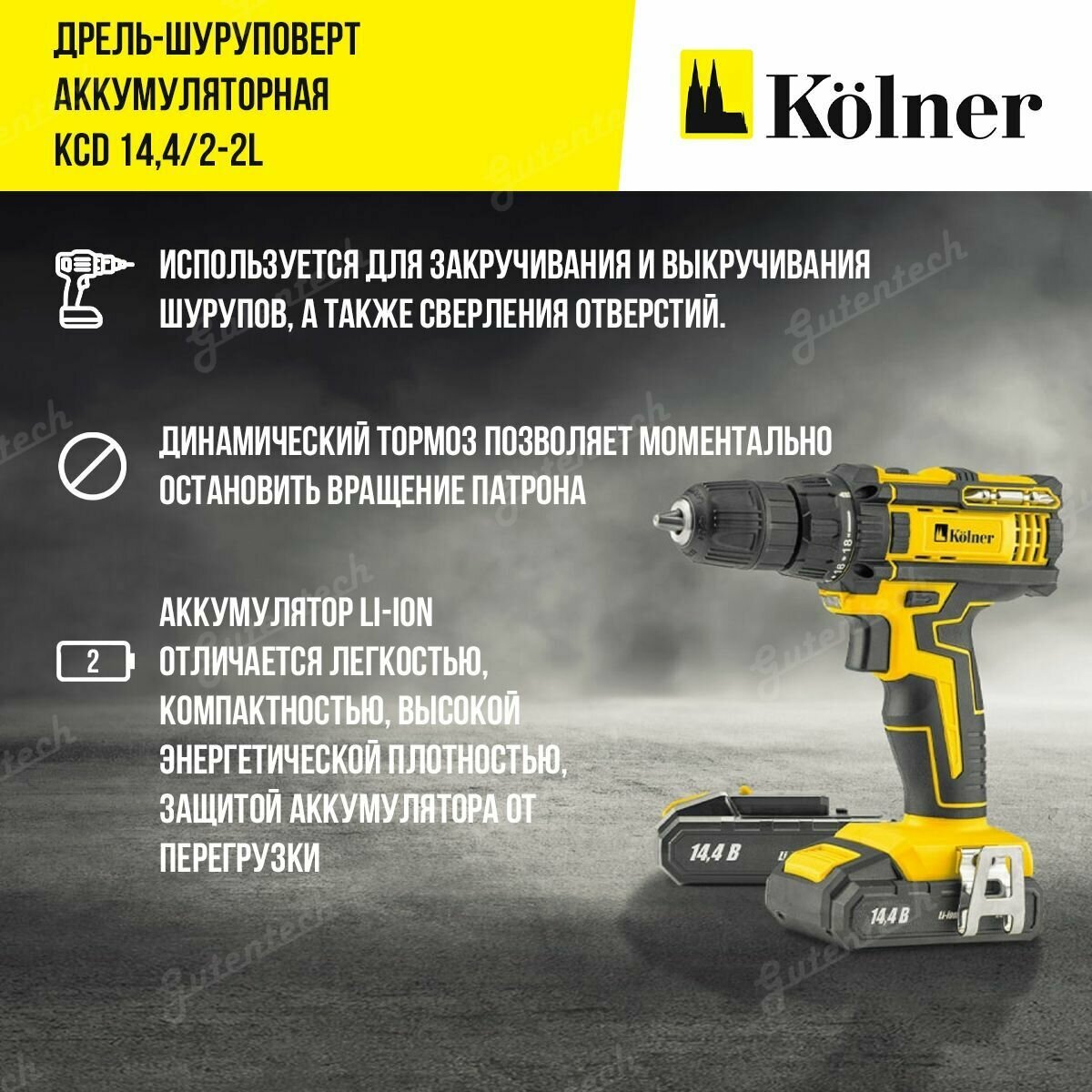 Аккумуляторная дрель-шуруповерт KOLNER KCD 14,4/2-2L