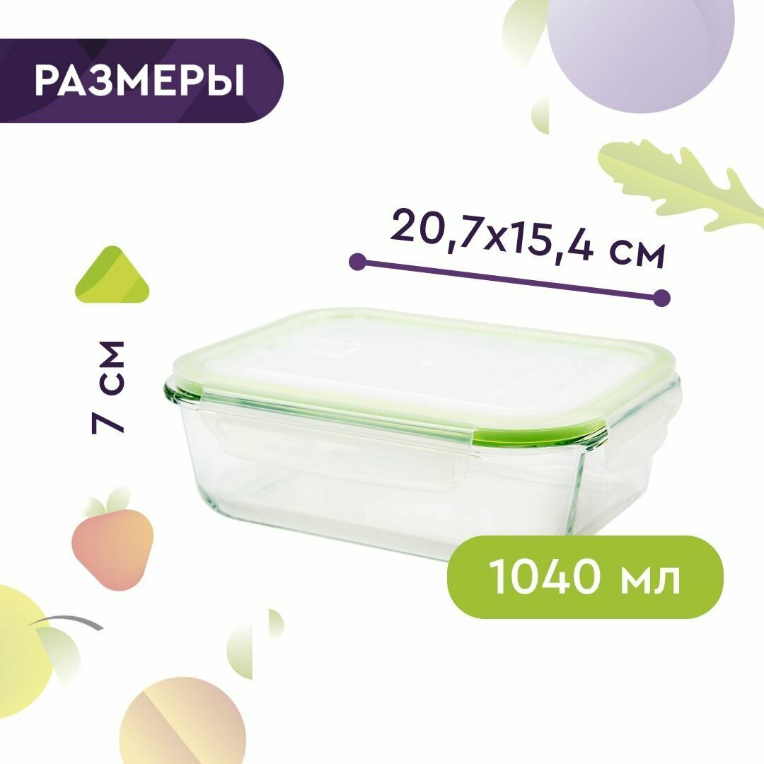 Пищевой контейнер для хранения еды из жаропрочного стекла Eley прямоугольный, цвет: зеленый, 1,04 л
