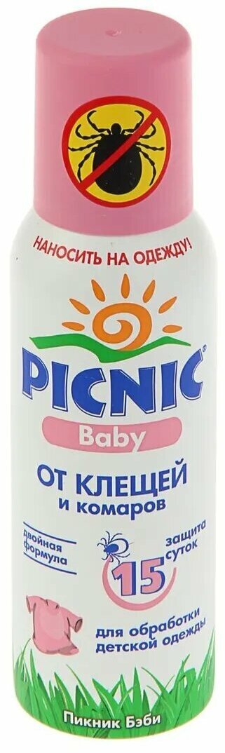 Средство от клещей и комаров для детей от 2 лет Пикник Baby, аэрозоль - 125 мл