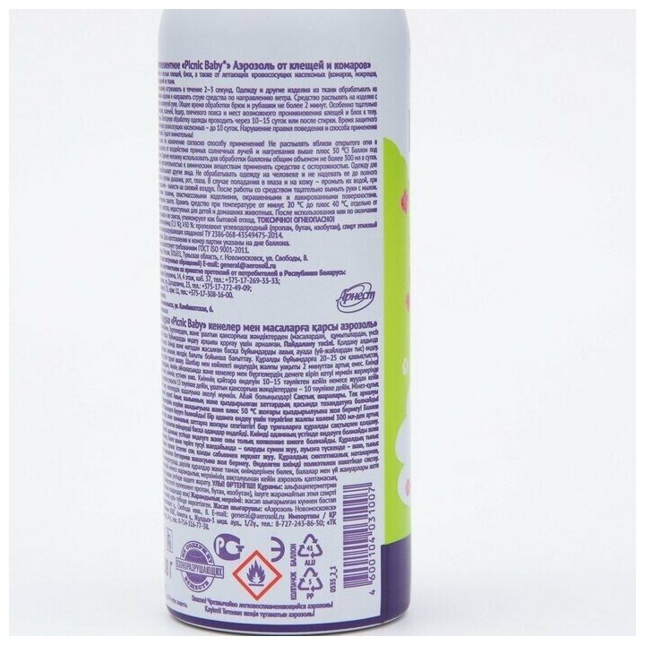 Аэрозоль "Picnic Baby", от клещей и комаров, флакон, 125 мл