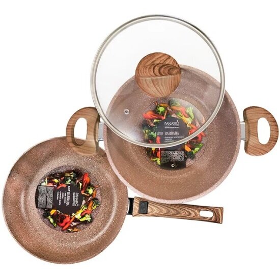 Набор посуды "Barbara" №1 из 3-х предметов Комплектация: 1.Сковорода глубокая 24см PANAIRO "Barbara" cо съемной ручкой soft-touch 2.Кастрюля 2л PANAIRO "Barbara" 3.Крышка