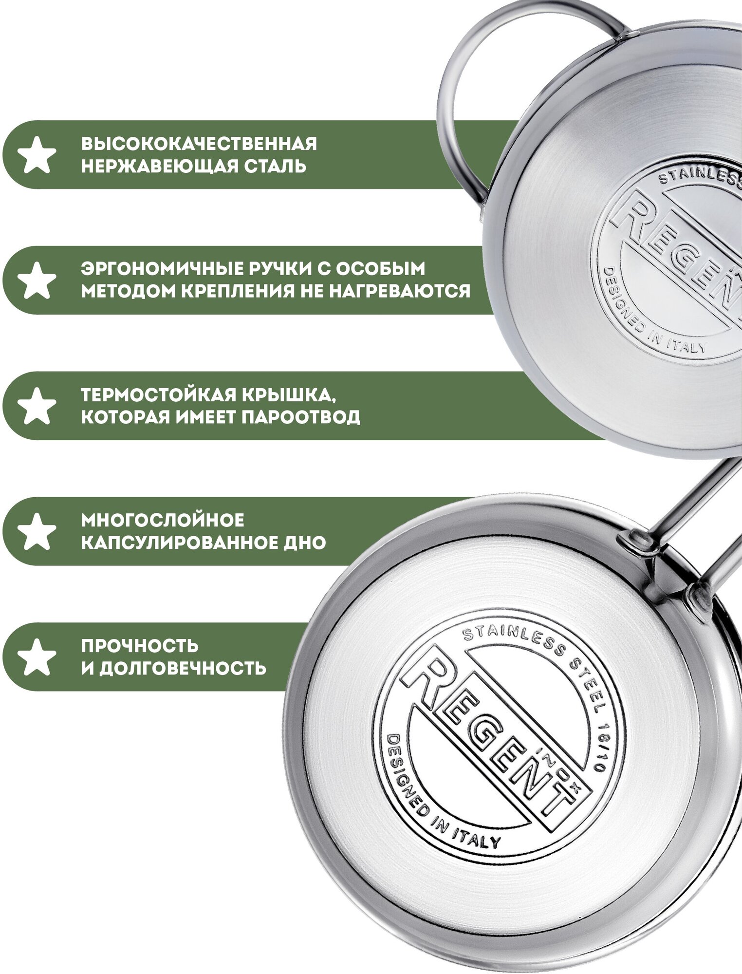 Regent inox Набор кастрюль 5предметов Linea BIMBO vitro индукция 93-BIMv-10 интересное: