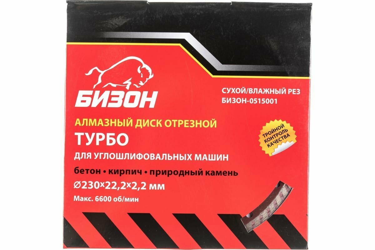 Бизон Диск алмазный отрезной 230*22,2мм*2,2мм,турбо,сухой/влажный рез,по бетону,кирпичу,камню,карт.к интересное: