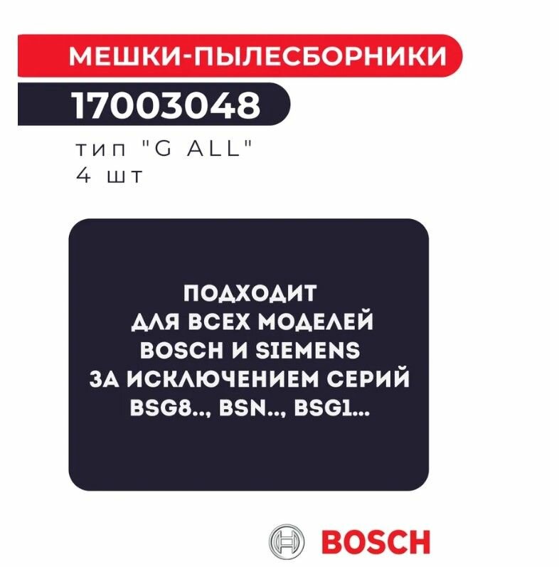 Bosch 17003048 (17000940, 461353) Мешки-пылесборники Bosch PowerProtect, тип "G ALL", 4 шт.