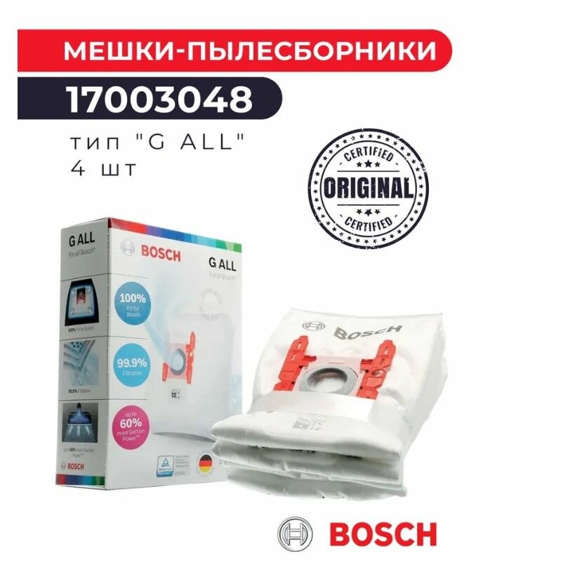 Мешки пылесборники тип "G ALL" 17003048/ 17000940 для пылесоса Бош Bosch