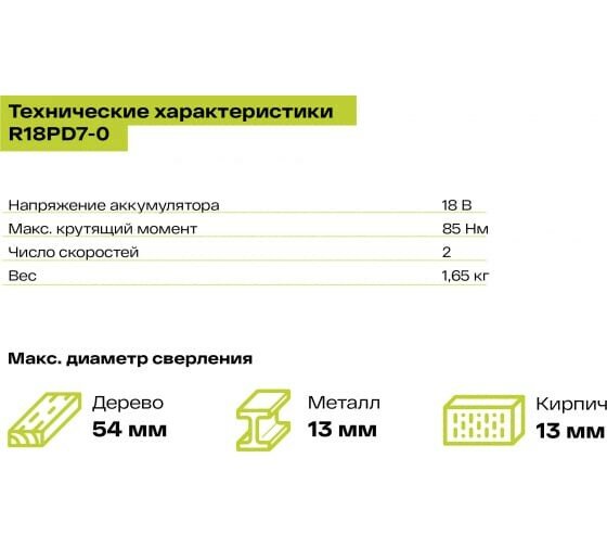 R18PD7-0 Дрель-шуруповерт Ryobi R18PD7-0 ONE+ Без АКБ