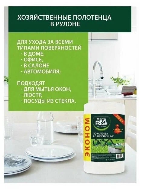 Полотенца хозяйственные С0006194 эконом master fresh в рулоне 150 шт, 20*23 см