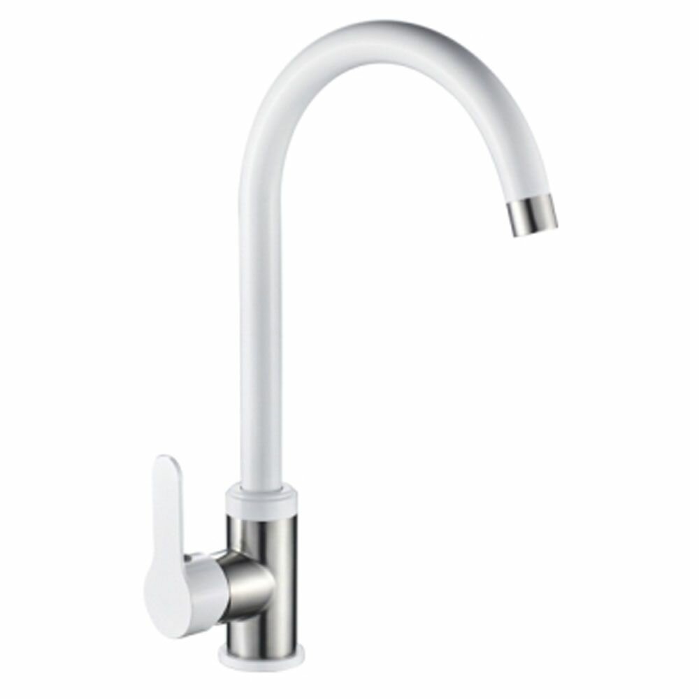 74105W Смеситель Кухня LEDEME d-35 нержавейка (белый/сатин)
