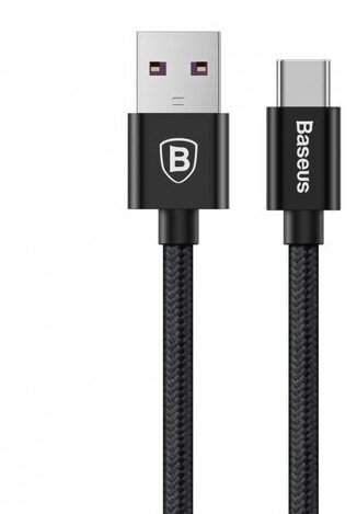 Дата-кабель Baseus Speed QC USB-Type-C (плетеный шнур / 5 A) 1 м, черный