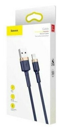 Кабель в тканевой оплетке USB - Lightning Baseus Cafule CALKLF-BV3, 1 м / 2.4 A, синий-золотой