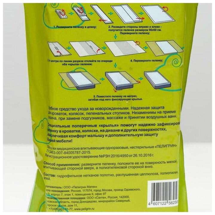 Одноразовая пеленка Пелигрин с крыльями 90х180, 4 шт. интересное: