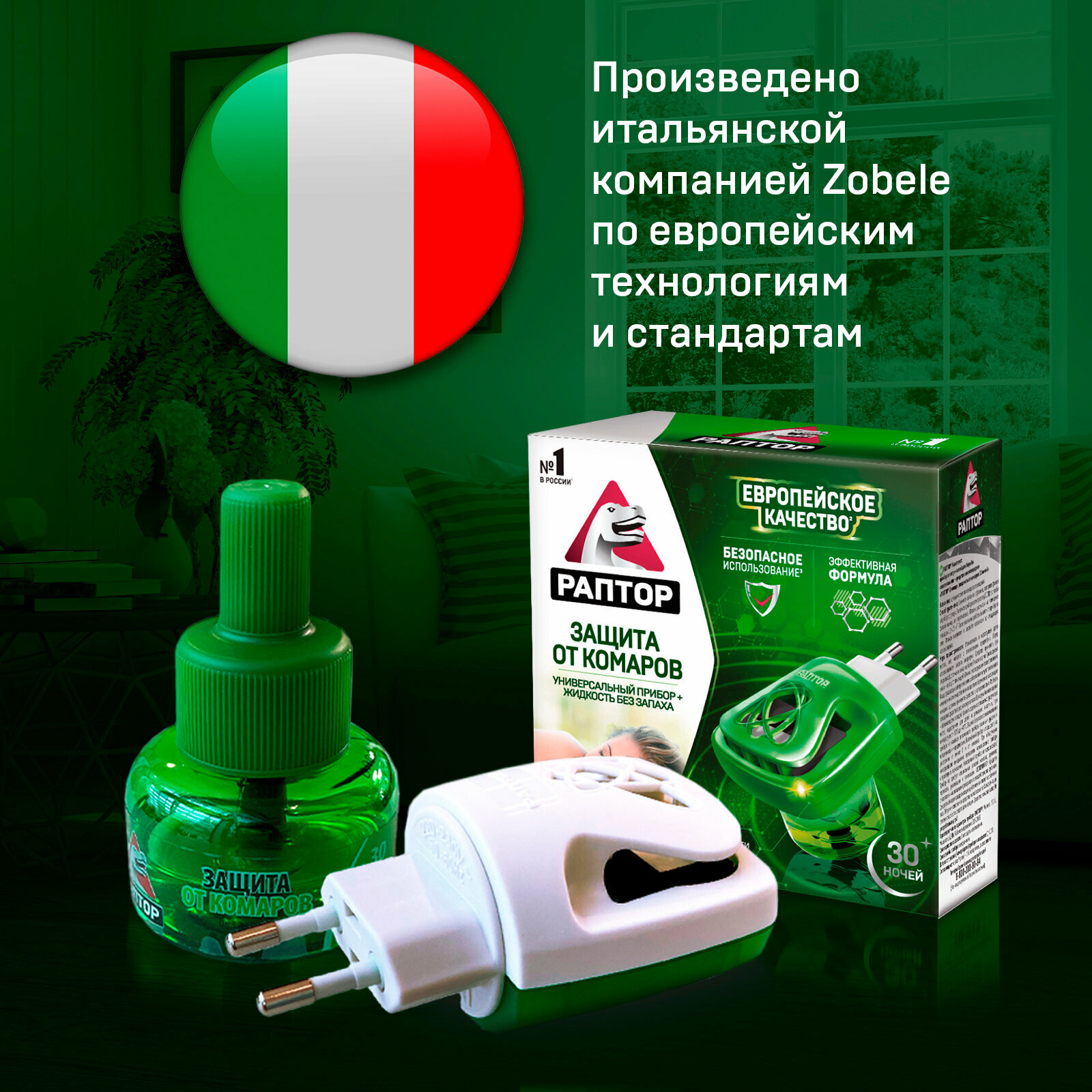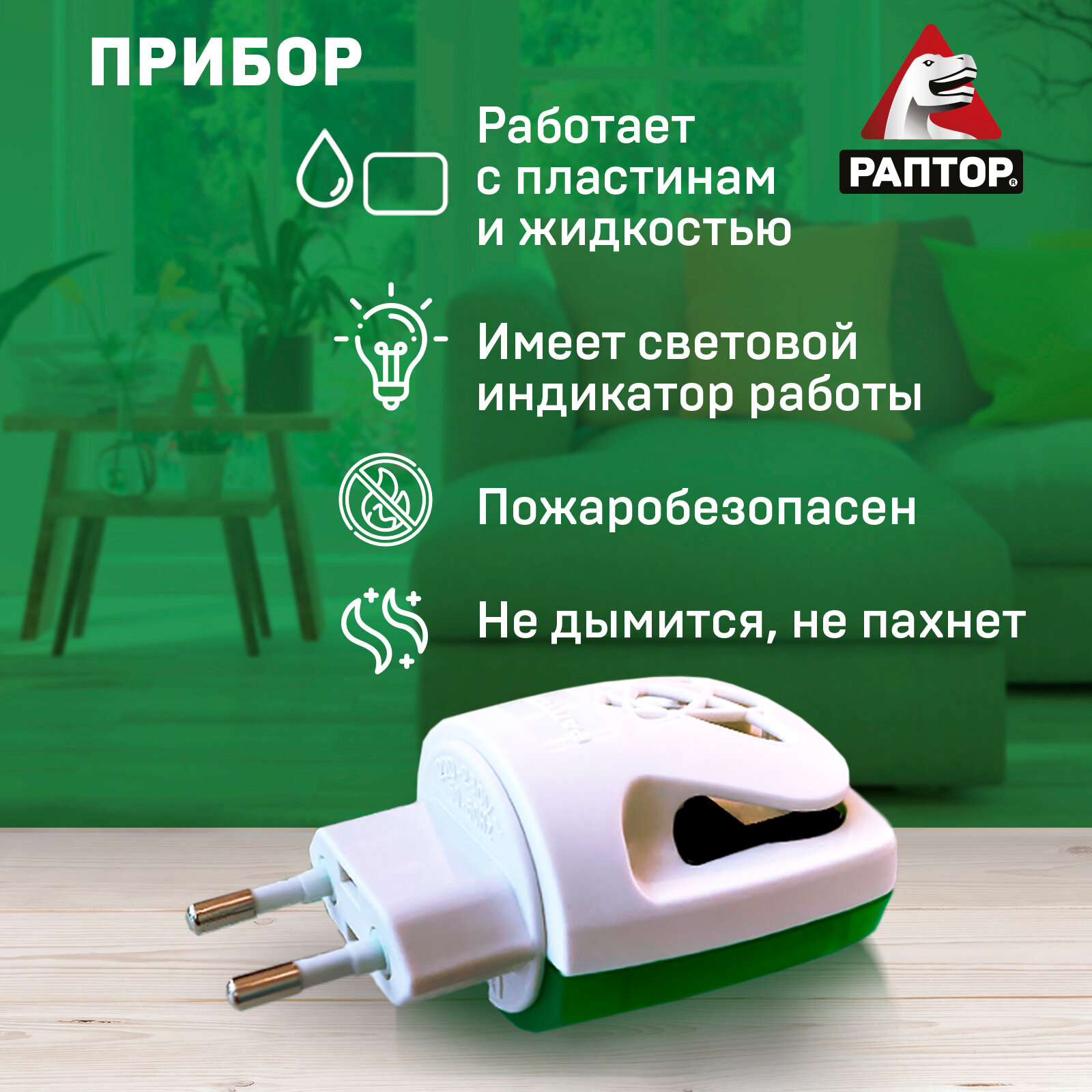Фумигатор + жидкость Раптор от комаров, 101 г, 20 мл, 30 ночей, зеленый