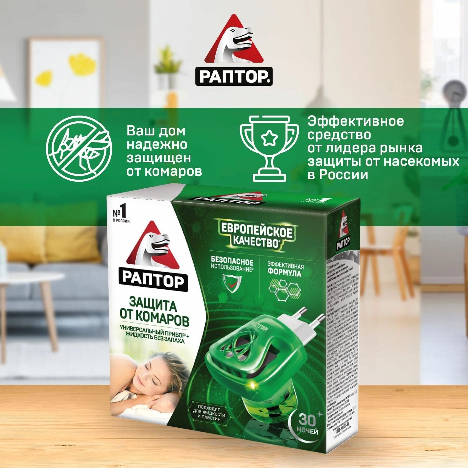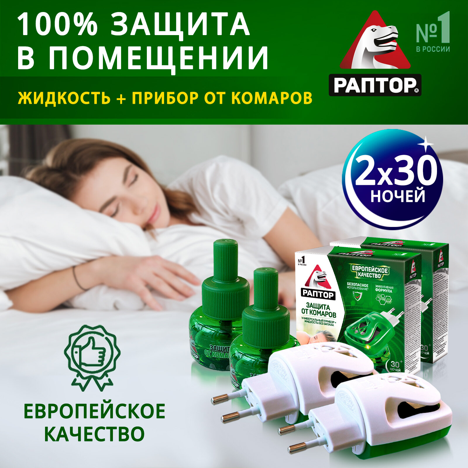 Купить Раптор Комплект: прибор электрический + жидкость от комаров без запаха 30 ночей 2 шт