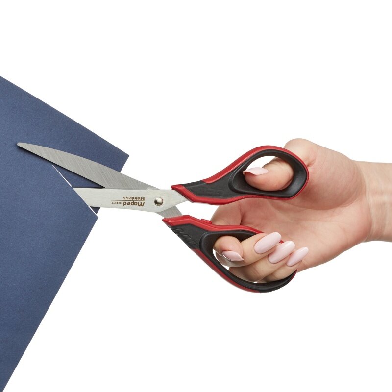 Ножницы 21 см MAPED ADVANCED GEL, асимметрия, серые с красным