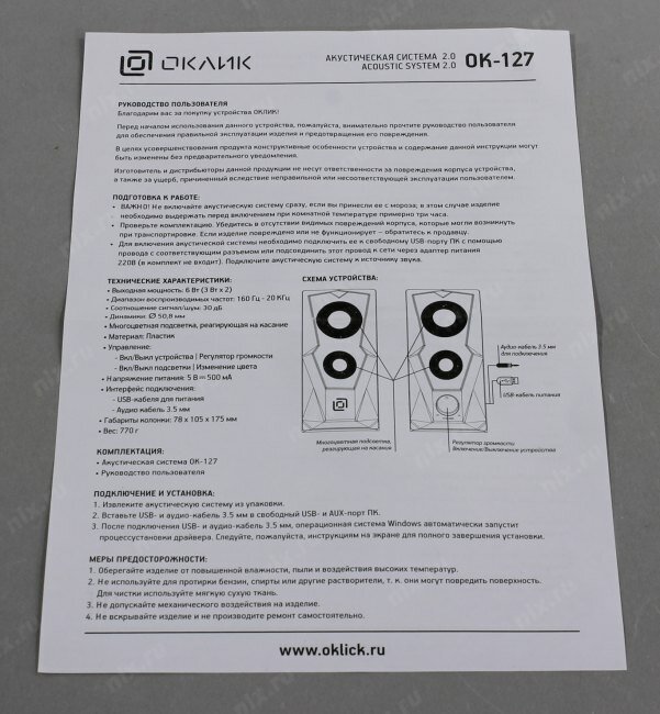 Колонки Oklick OK-127 2.0 черный 6Вт интересное: