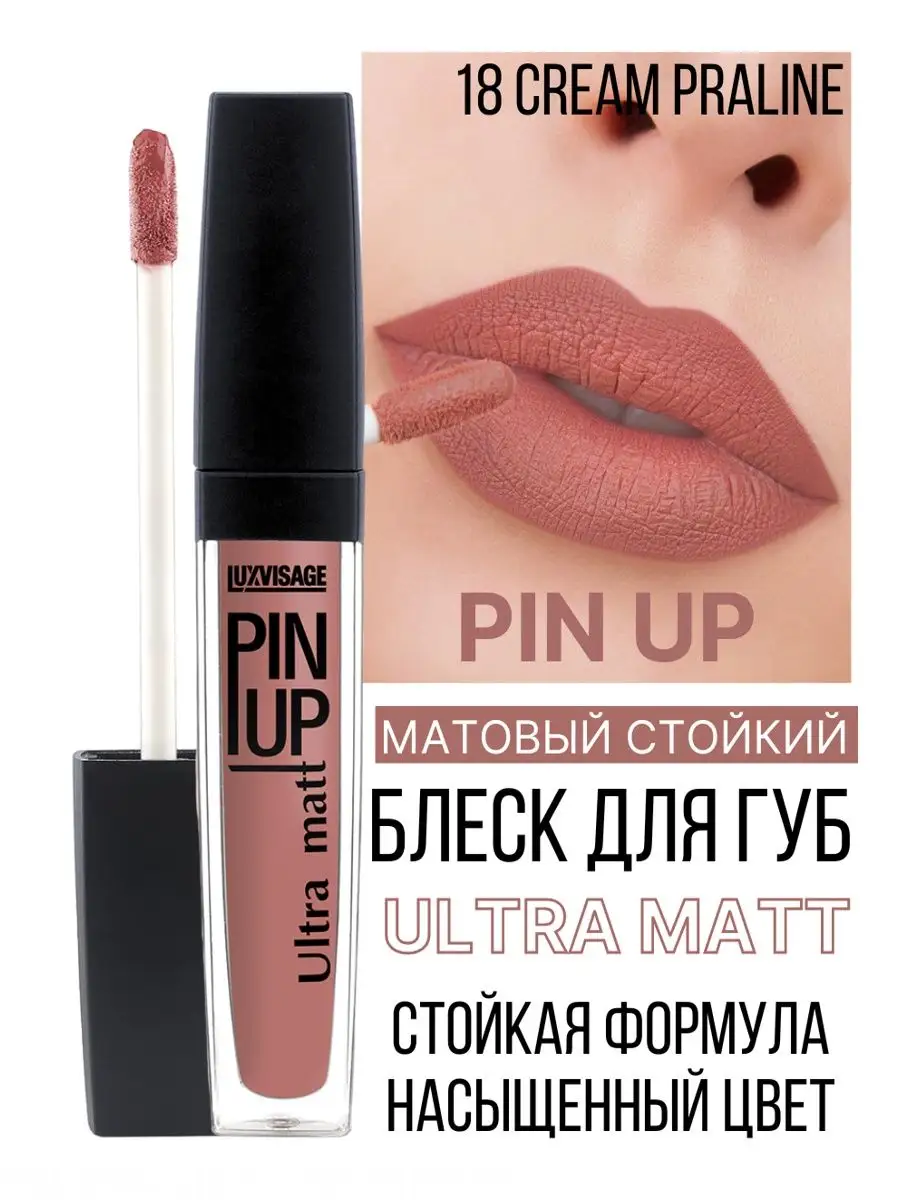 Купить LUXVISAGE Блеск для губ PIN UP ULTRA MATT матовый, тон 18 CREAM PRALINE, 5 мл