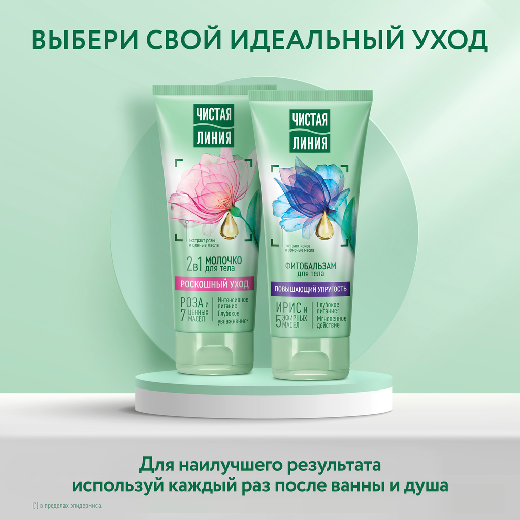Молочко для тела Чистая линия Роскошный уход 2 в 1, 200 мл