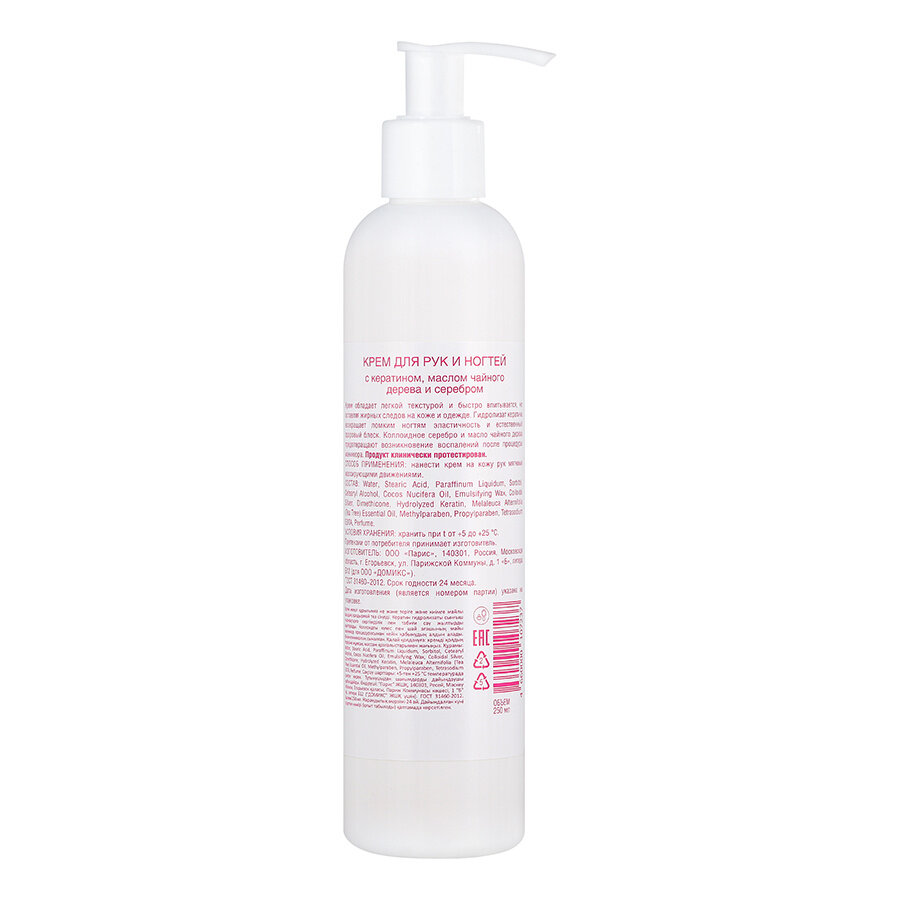 Крем для рук и ногтей с кератином, маслом чайного дерева и серебром, 500 мл