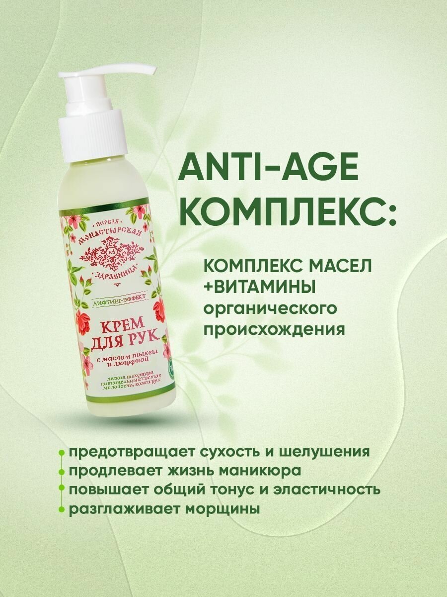 Крем для рук омолаживающий с маслом тыквы и люцерной Лифтинг эффект Первая монастырская здравница 100 мл интересное: