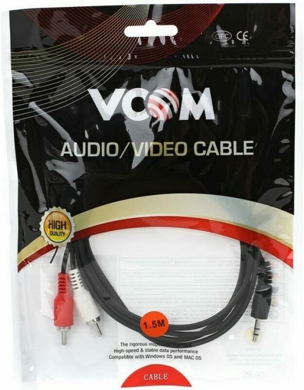 Vcom кабели VAV7183-1.5M Кабель соединительный 3.5 Jack M - 2xRCA M , стерео, аудио, 1.5м 06937510860715